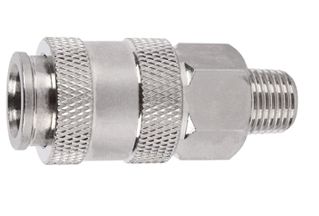 Engate rápido universal com rosca macho de 1/4 ". Compatível com todos os sistemas de ar comprimido. Roscas invertidas, sem necessidade de aplicar selante.